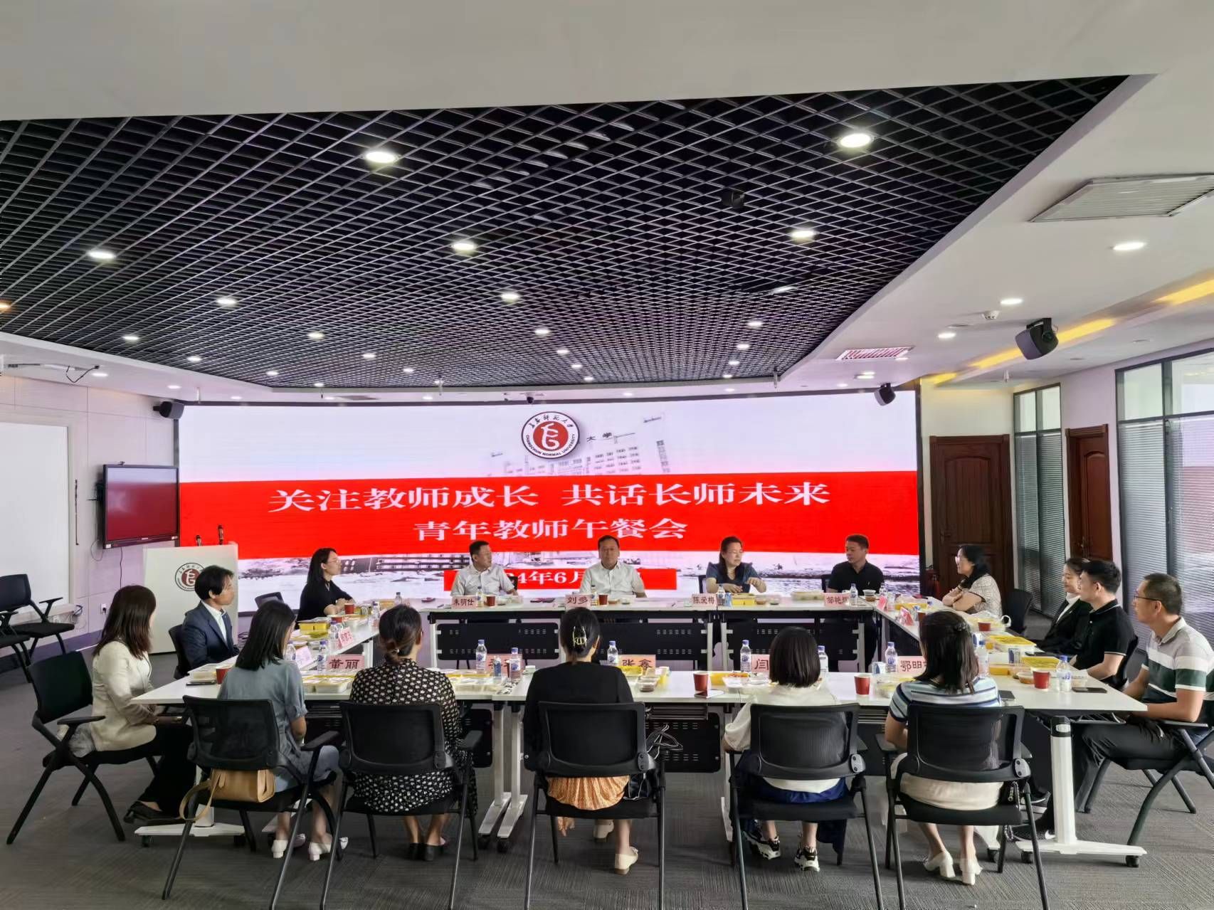 620日中午,学校在教学综合楼1101室召开以“关注教师成长 共话长师未来”为主题的青年教师午餐会。党委书记刘多出席会议并讲话,副校长陈爱梅主持会议。
